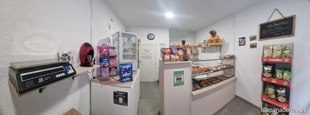 Somos un pequeño despacho de pan pero podrás encontrar: bolleria dulce y salada, pan de varios tipos, café frio para llevar, café calentito, bebida fría, tartas por encargo...cualquier cosa que le ape...