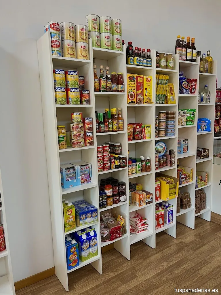 Bollería recién horneada, repostería (tartas por encargo, pastelitos dulces y salados) y alimentación latina (arepas, salchichón, chorizo, bebidas tropicales) y más